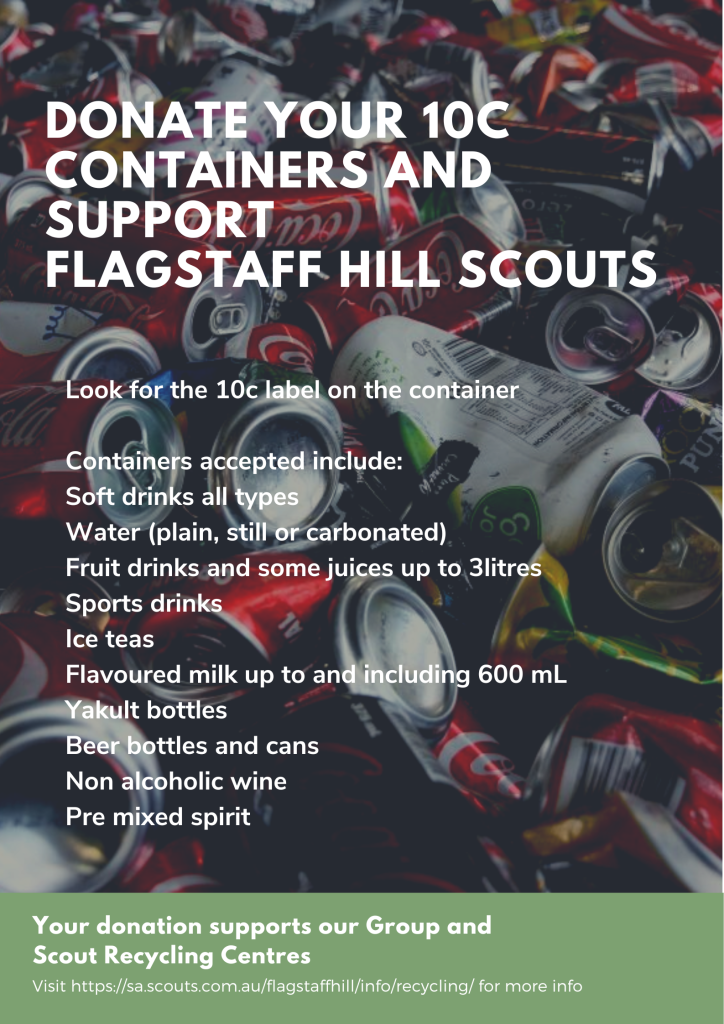 Flagstaff Hill Scout Group fundraises by participating in a container recycling program collecting 10c redeemable containers.